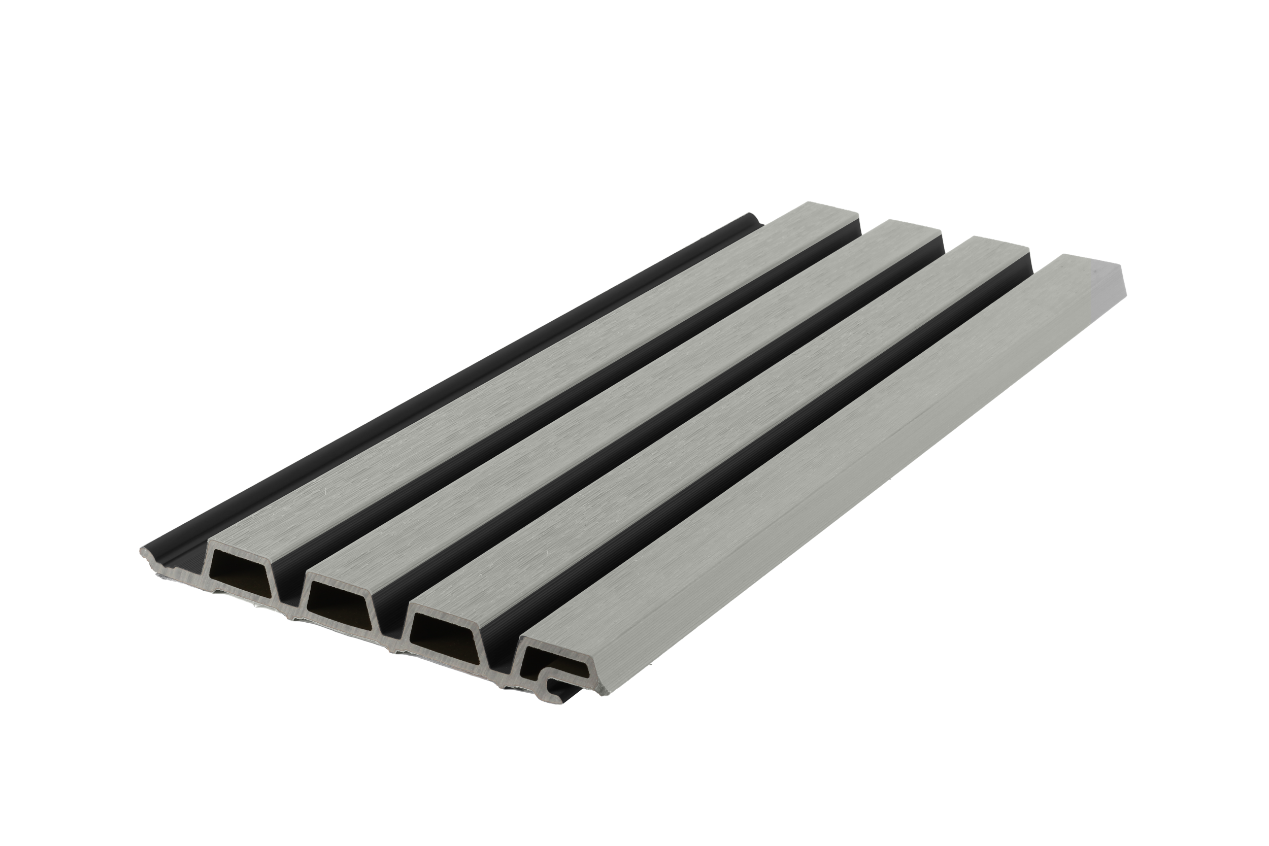 Geef jouw woning, schuur of uitbouw een moderne en hoogwaardige uitstraling met onze composiet gevelbekleding in Rhombus-profiel. De planken zijn voorzien van een CO-Extrusie beschermlaag, hierdoor nemen onze planken geen vocht op, blijven de planken kleurvast en gaan ze extreem lang mee. Deze Grijzen planken met zwarte achtergrond zorgen voor een beeld van extra diepte.