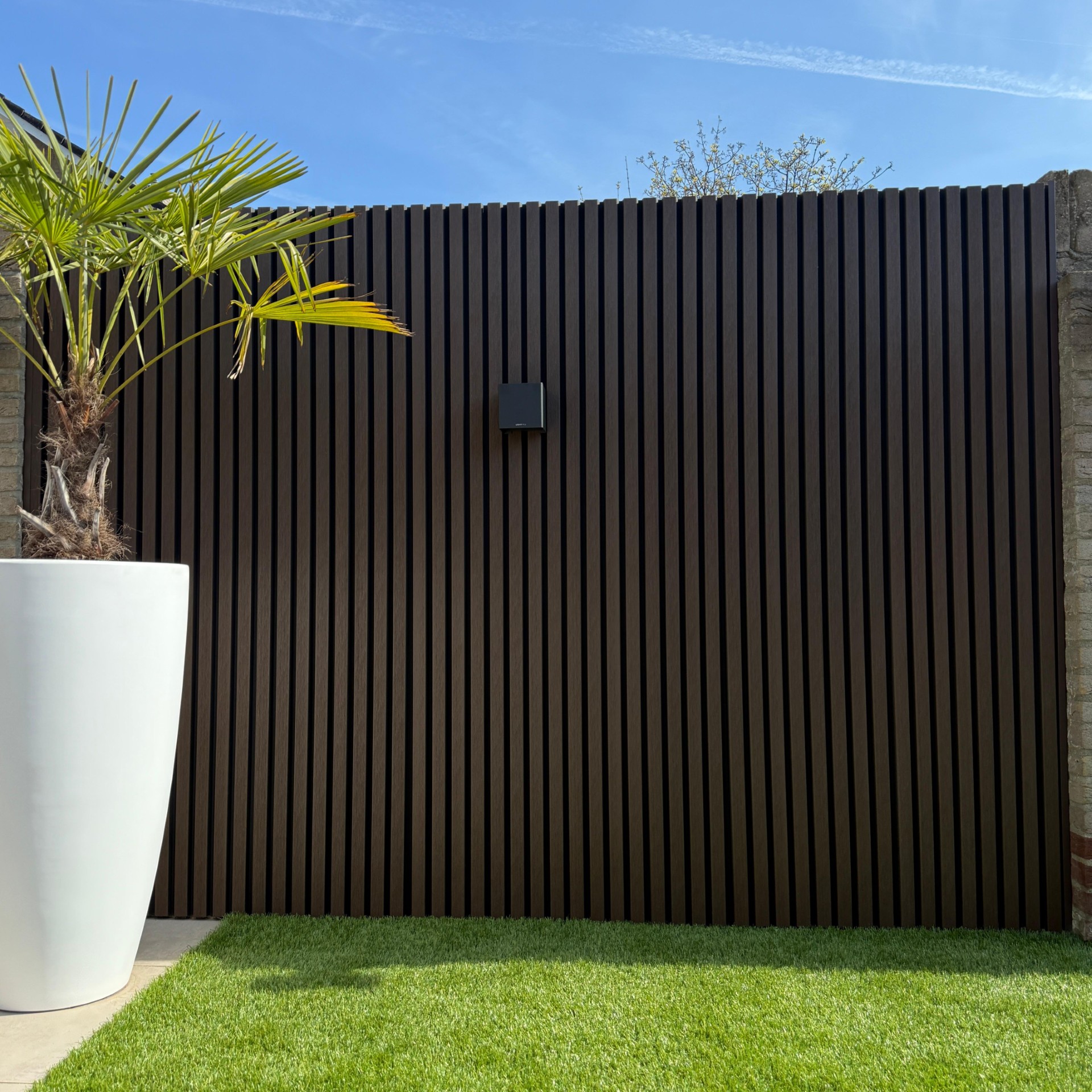 Of je nu kiest voor horizontale of verticale plaatsing, planken zijn in beide richtingen eenvoudig vast te schroeven op het regelwerk. We leveren standaard schroeven mee bij elke plank. De strakke, smalle openingen tussen de stroken zorgen voor een subtiel diepte-effect en een luxe, eigentijdse look. Daarnaast kun je de planken gemakkelijk inkorten of op maat maken, zodat ze altijd perfect aansluiten op jouw project.