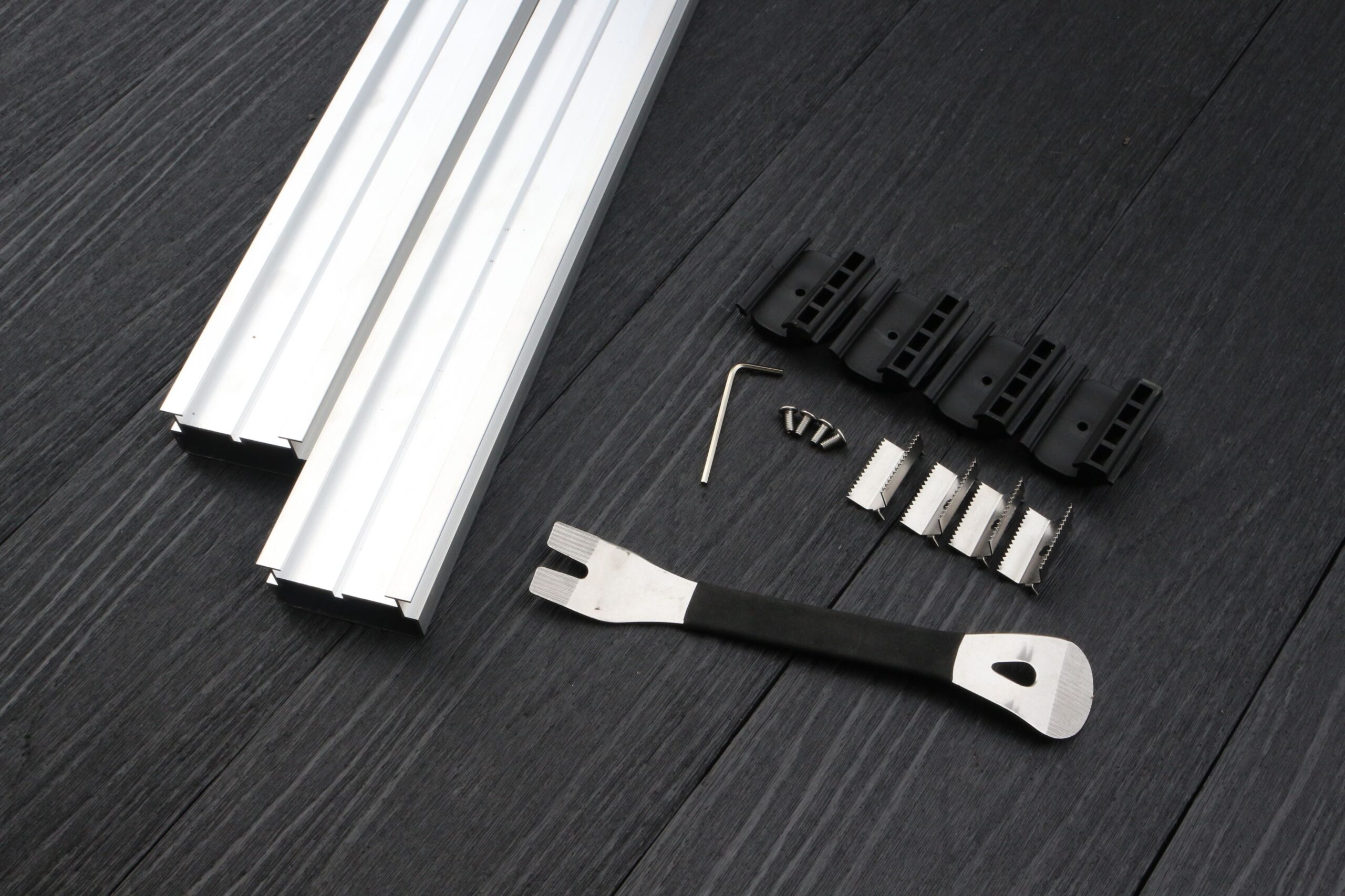 - Je kiest voor de plank met bevestiging materialen en aluminium onderregel. We leveren dan de plank en 13 clips voor bevestiging op de aluminium regel. per m2 leveren we 3 meter aluminium regelwerk.