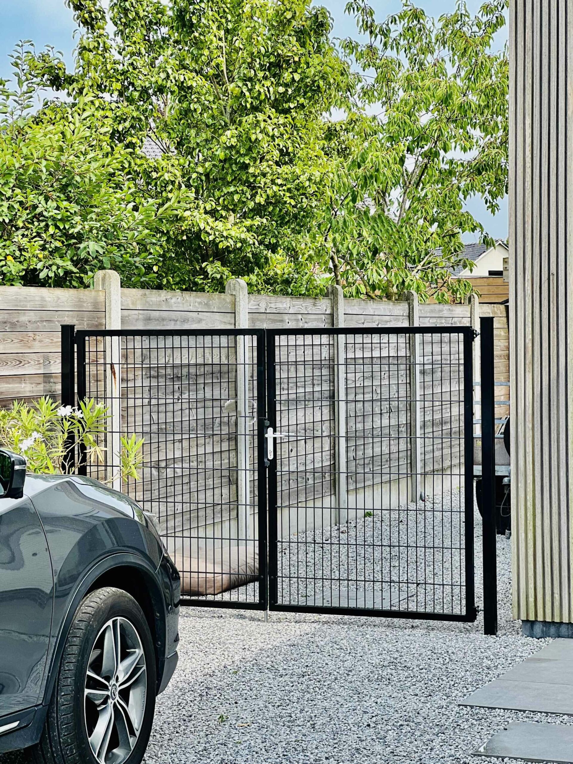 Een groot voordeel van dit type dubbele poort is: hij is multifunctioneel te gebruiken. Niet alleen kies je zelf of je hem linksom, rechtsom, naar binnen of naar buiten laat openen. Ook fungeert hij zowel als looppoort als als inrijpoort. Hoe dat kan? Simpelweg doordat je de keuze hebt of je slechts één of allebei de deuren openzet.